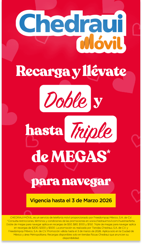 Estos paquetes solo podrás obtenerlos en tiendas Chedraui. Servicio con pago en efectivo o tarjetas al momento de la compra.